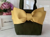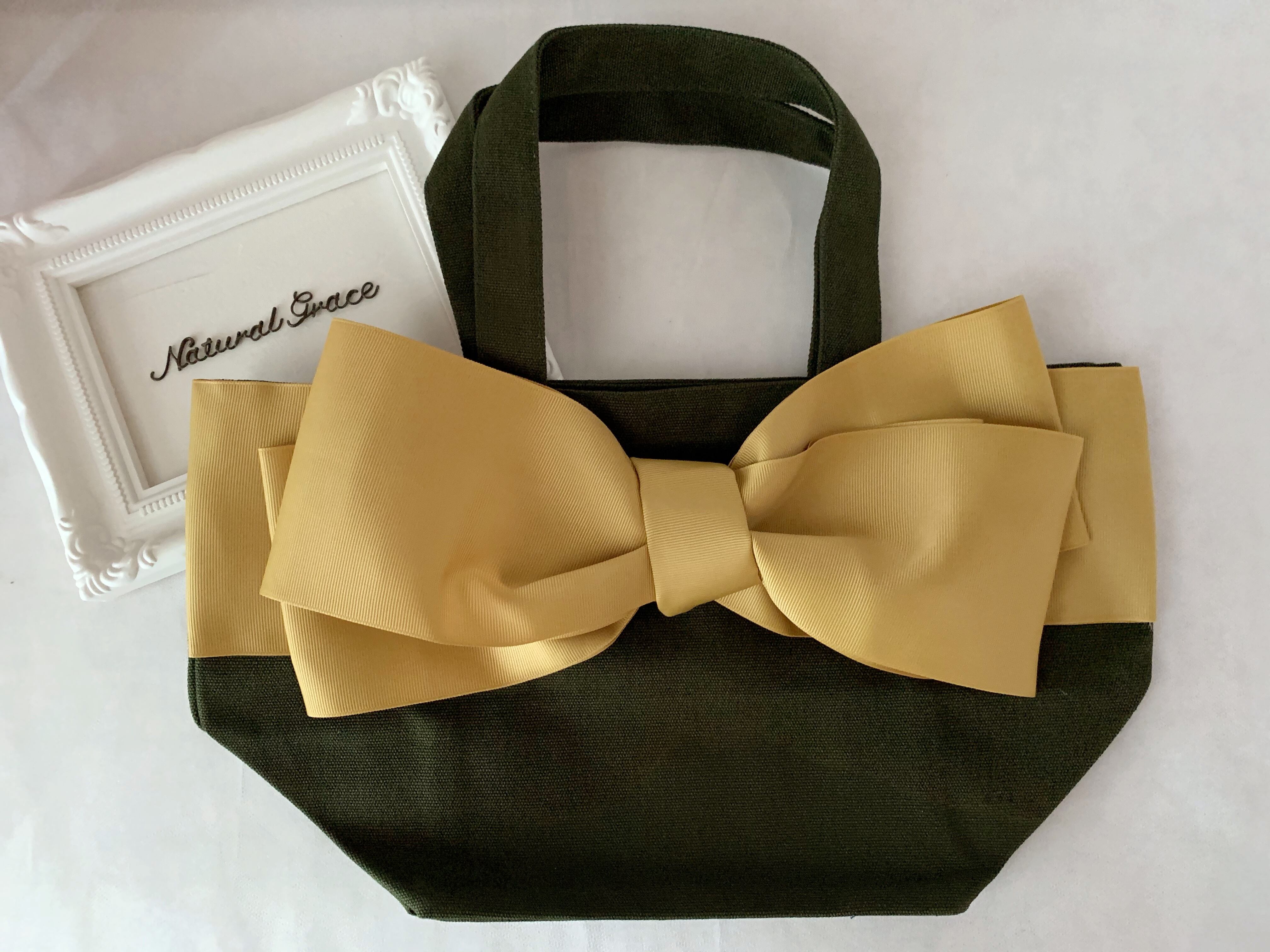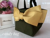【再販】大人キュートなリボンバッグ《candybag 》ダークグリーン×マスタード