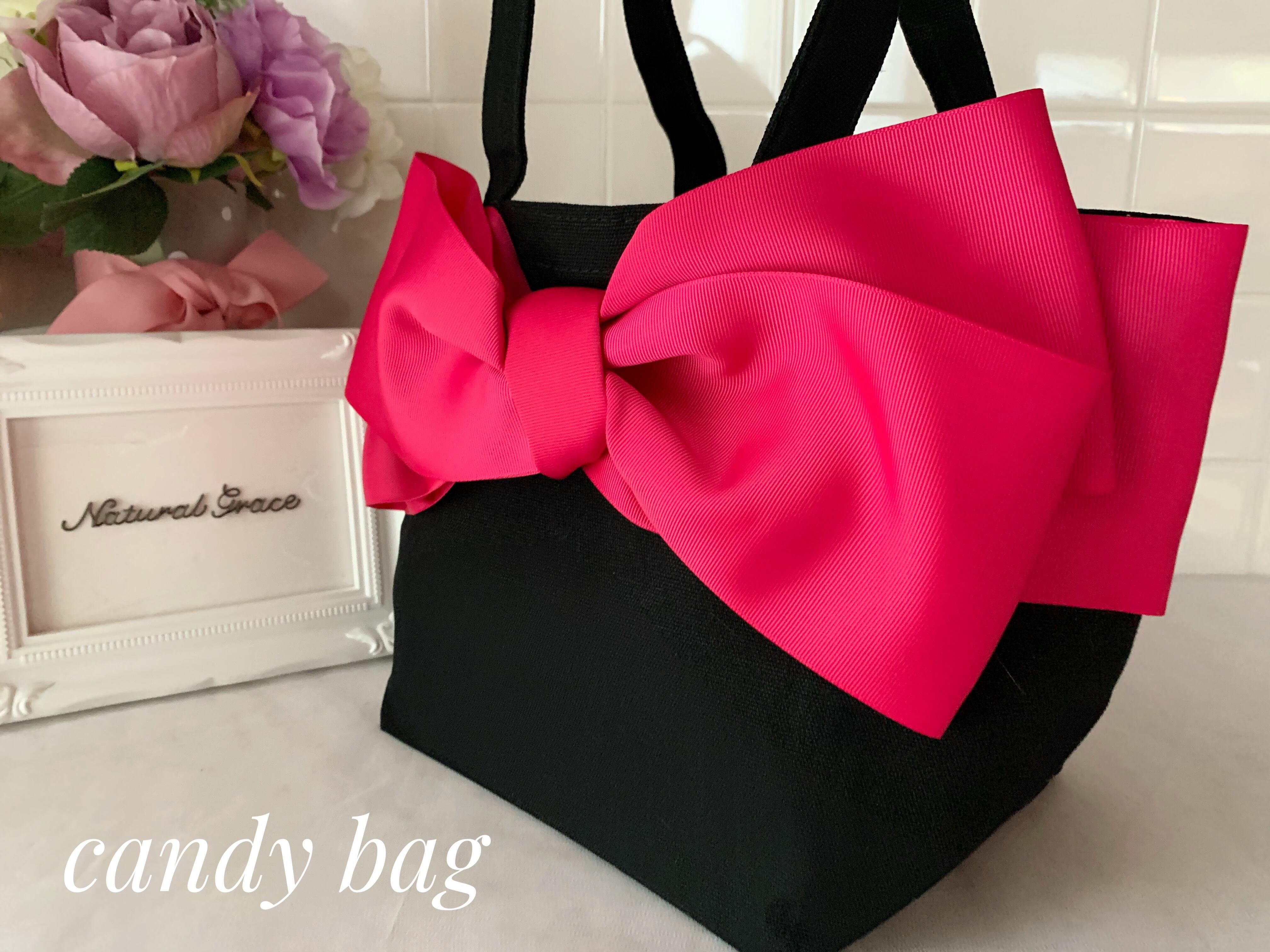 大人キュートなリボンバッグ《candybag 》ブラック×マゼンタ