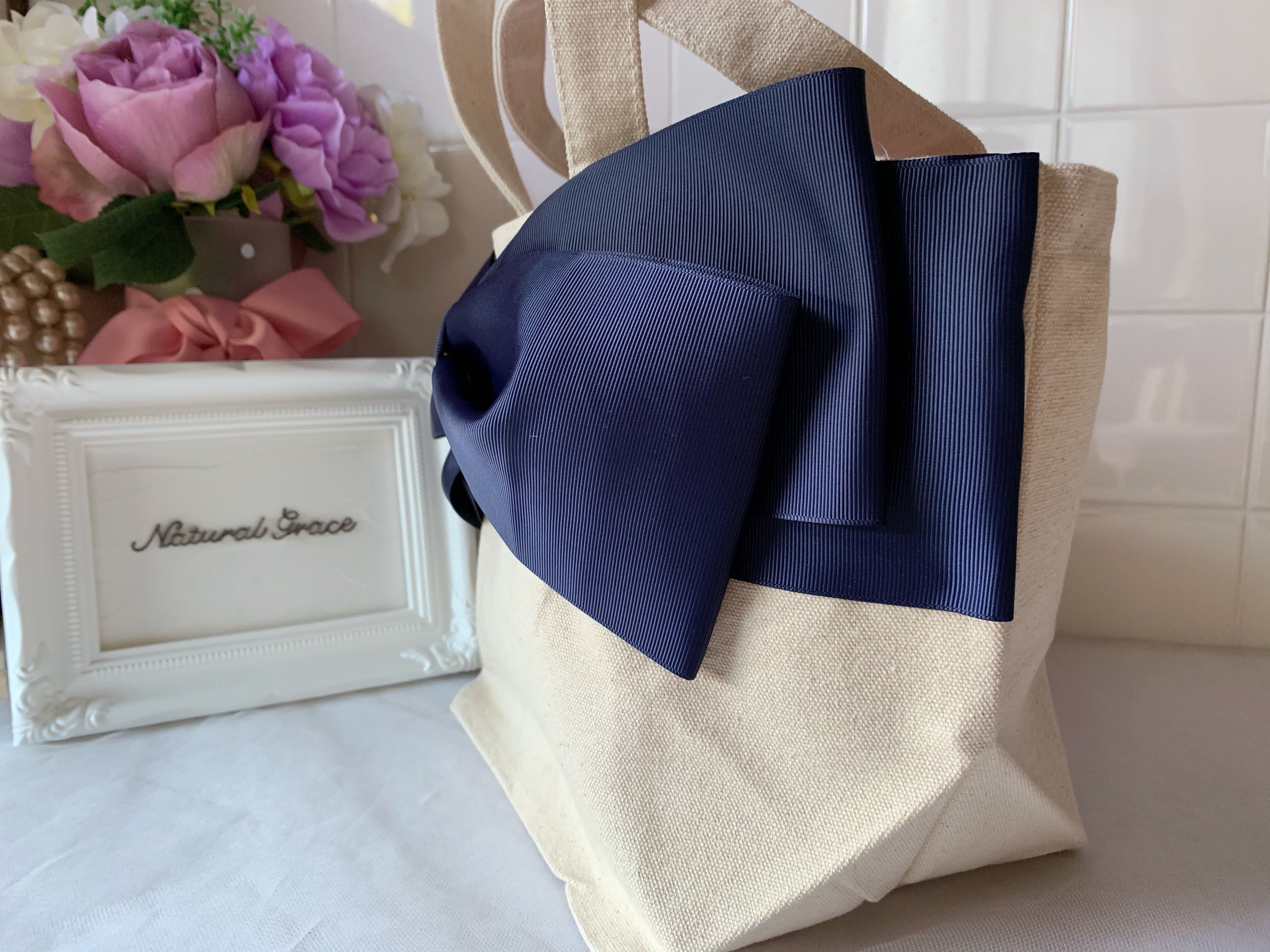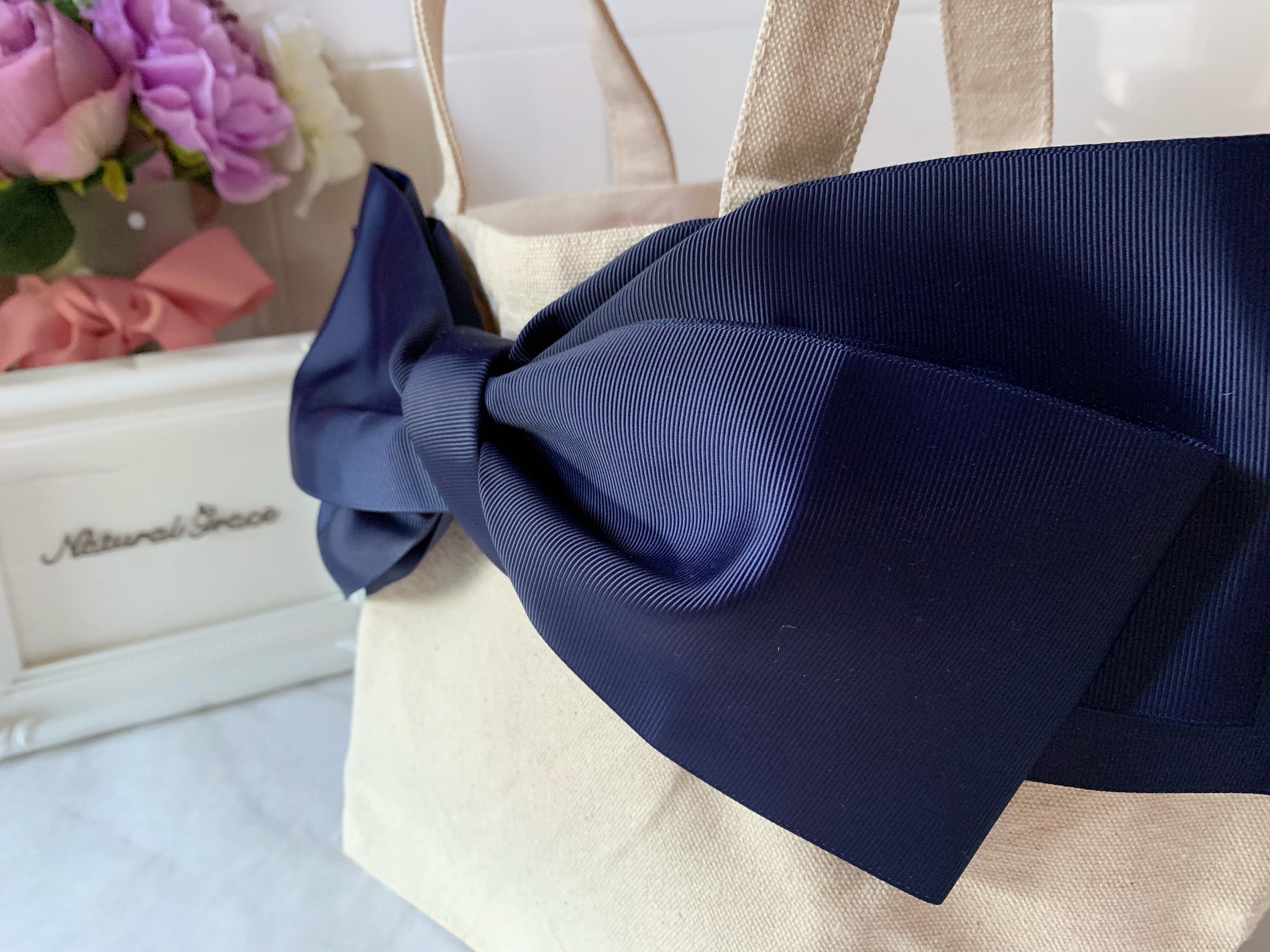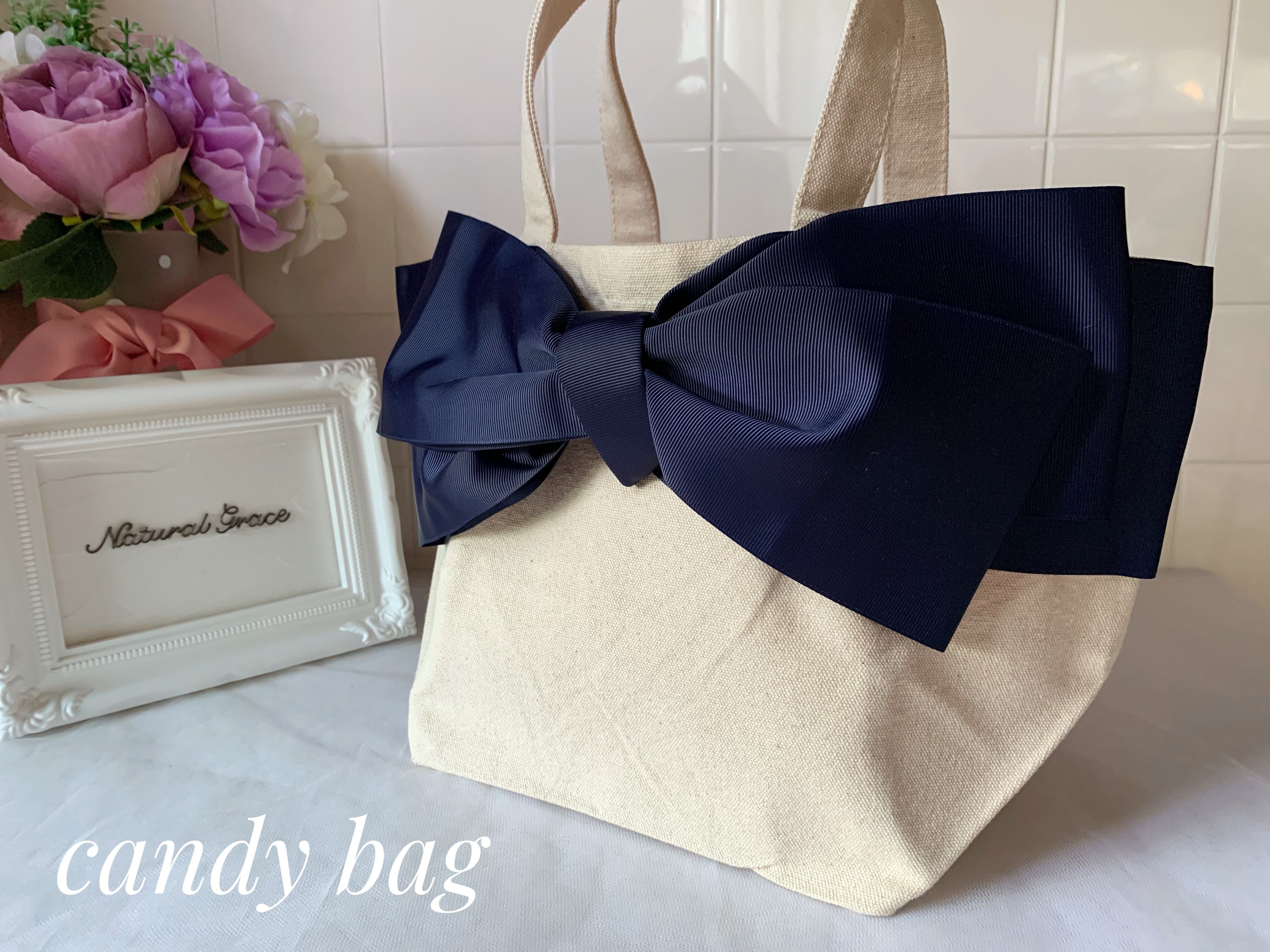 大人キュートなリボンバッグ《candybag 》きなり×ネイビー