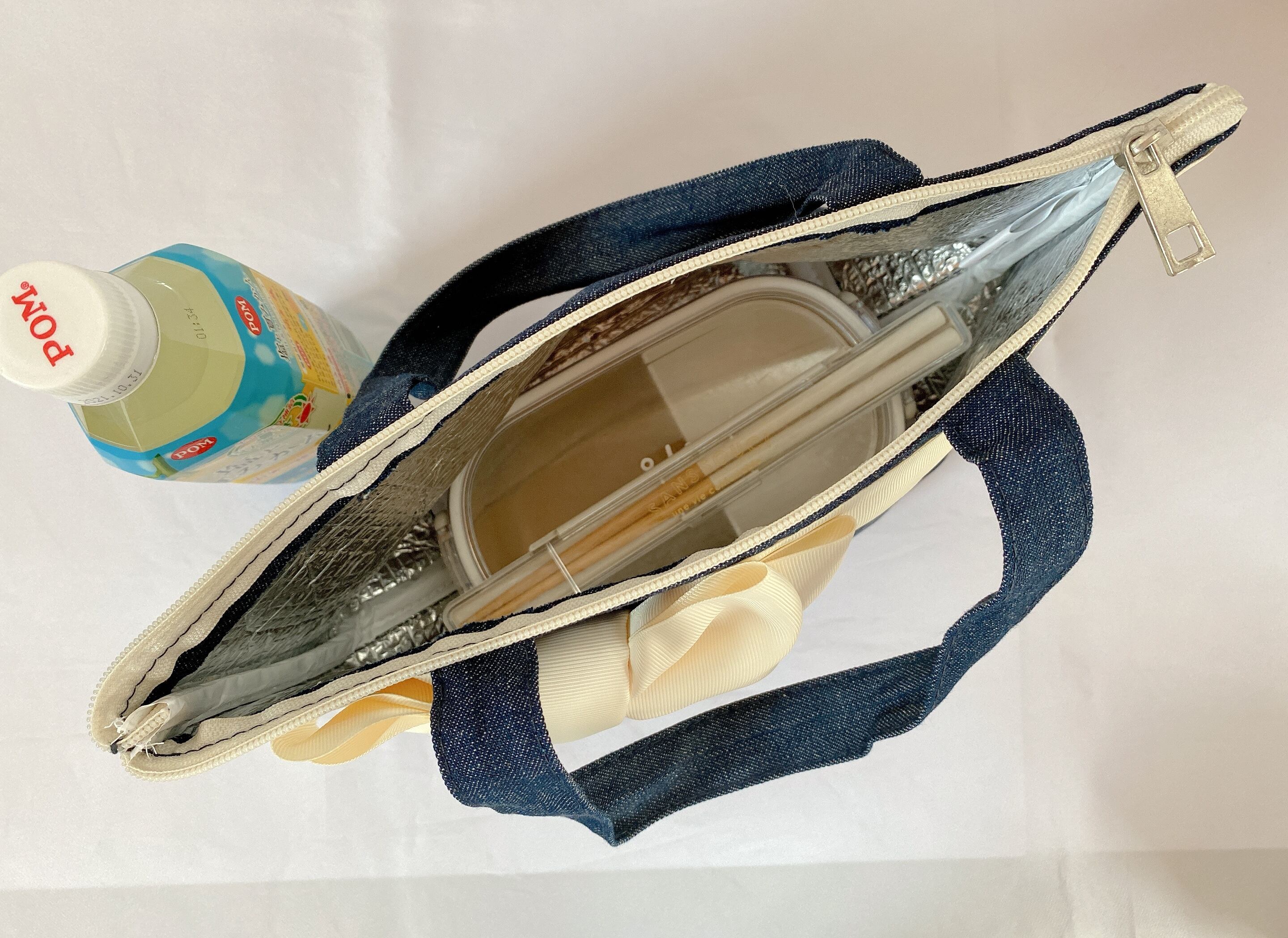 リボンのついた大人エレガントな保冷バッグ(キャンディズバッグ)です。