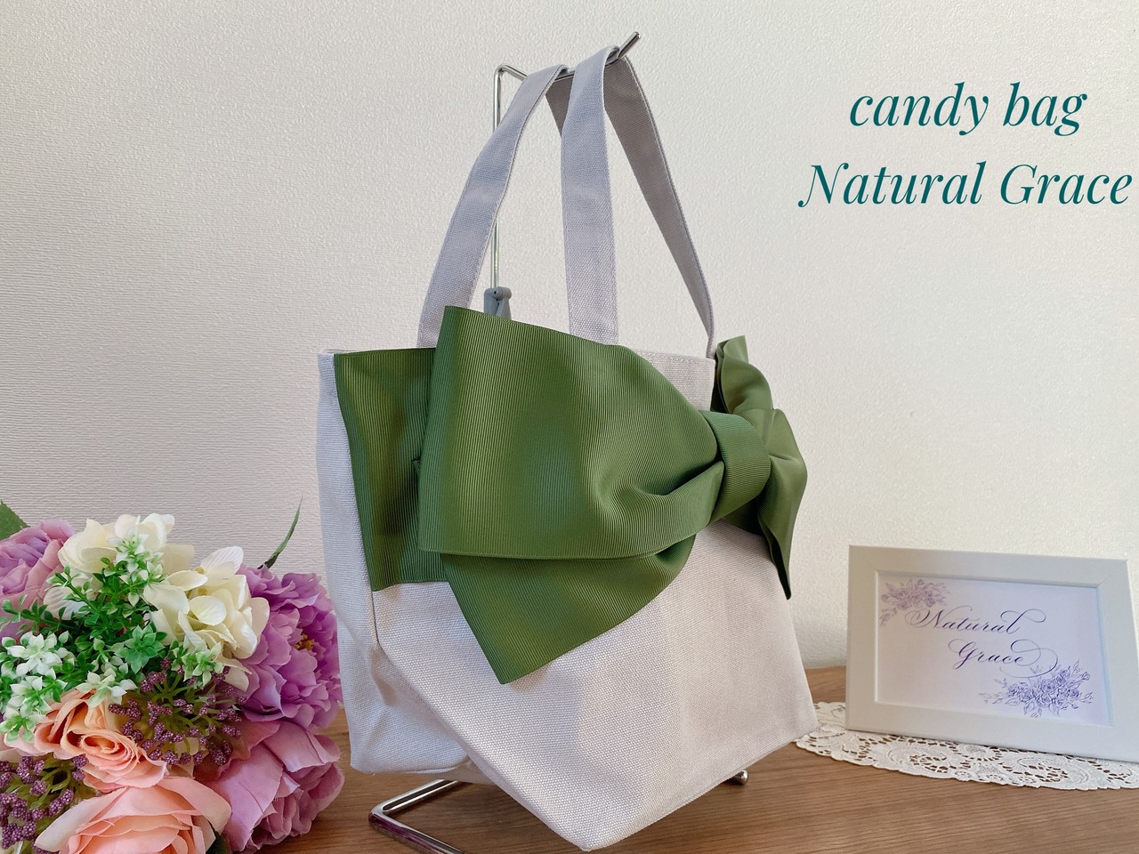 大人キュートなリボンバッグ《candybag 》グレー×カーキ