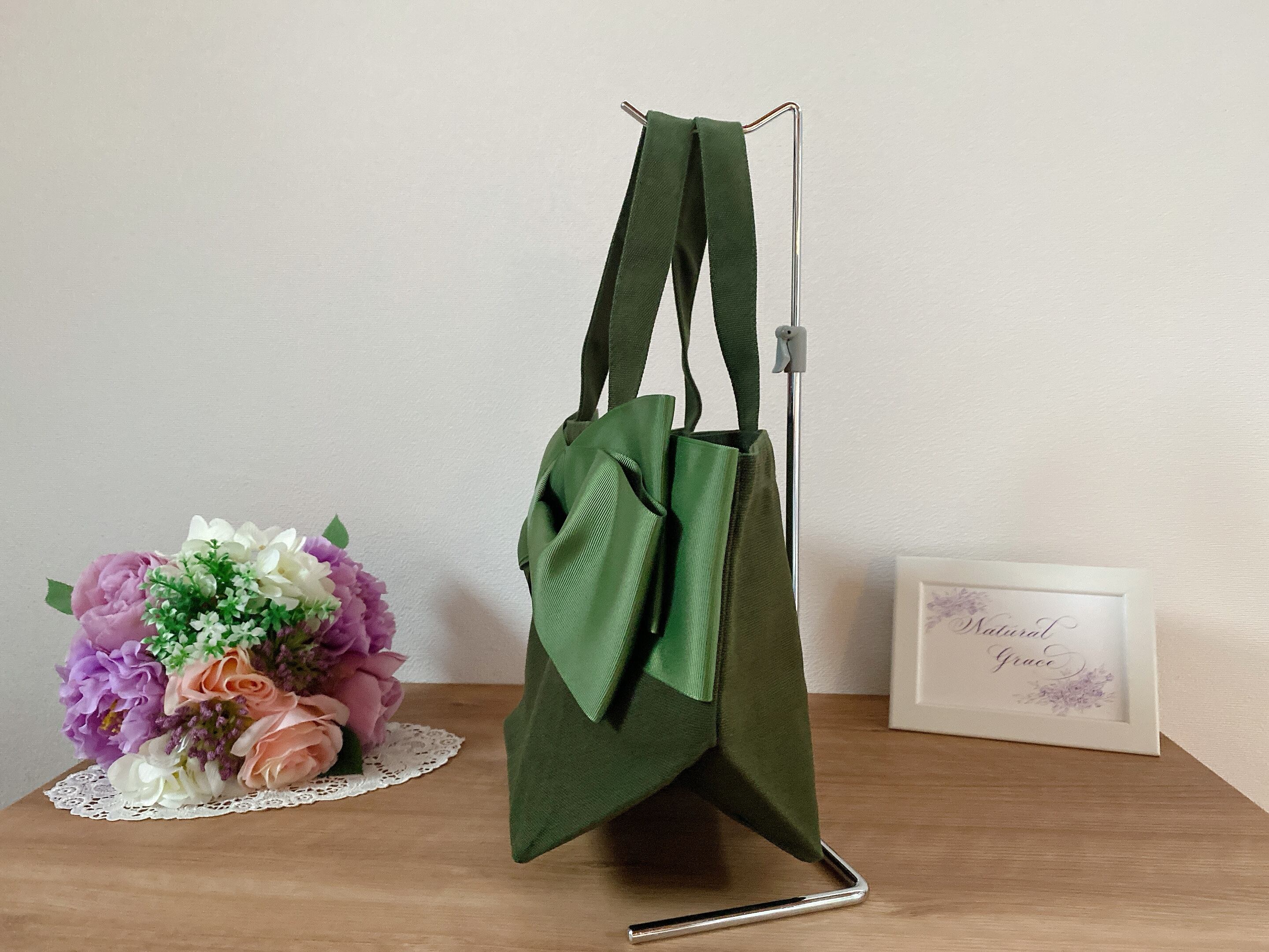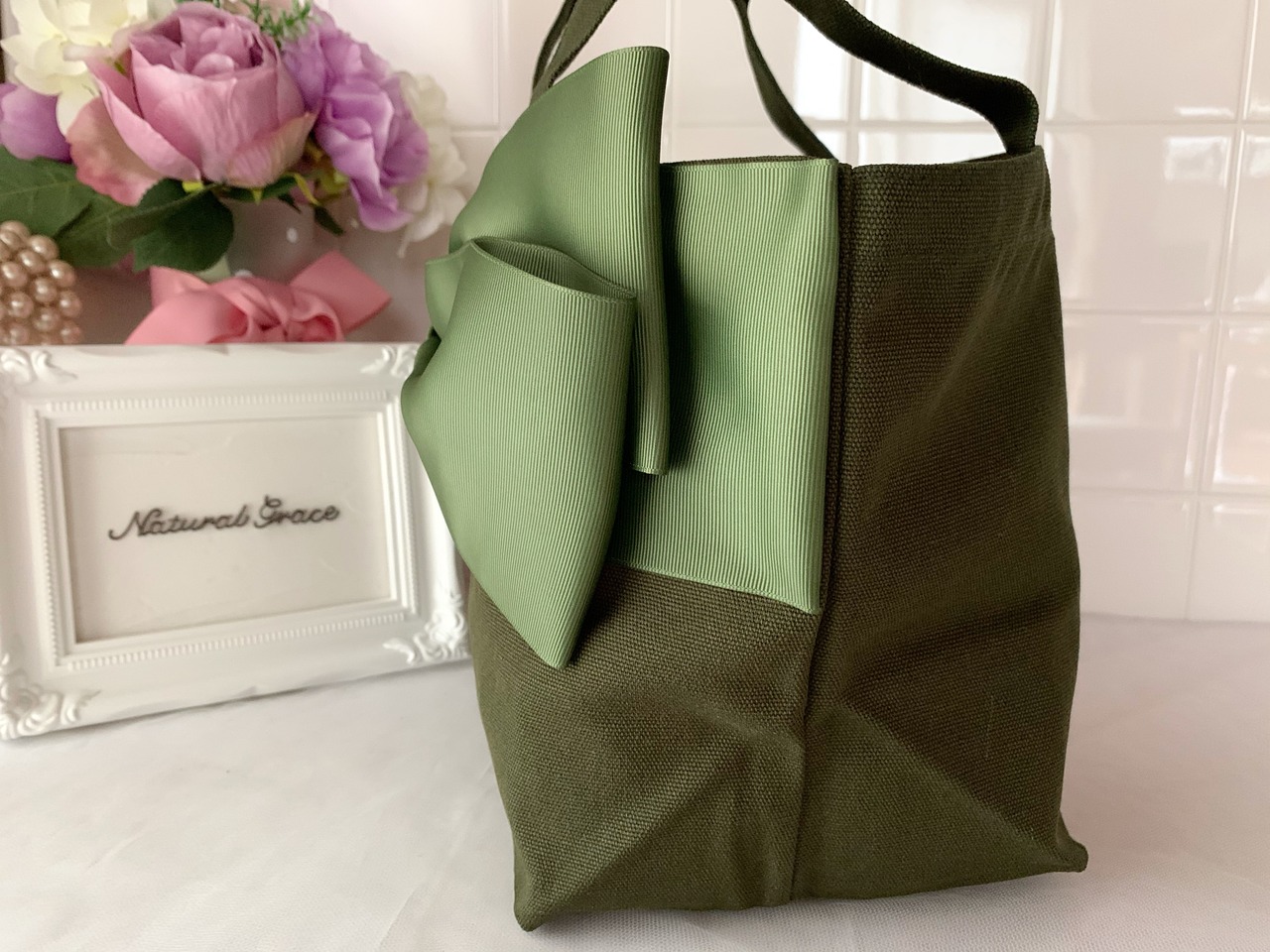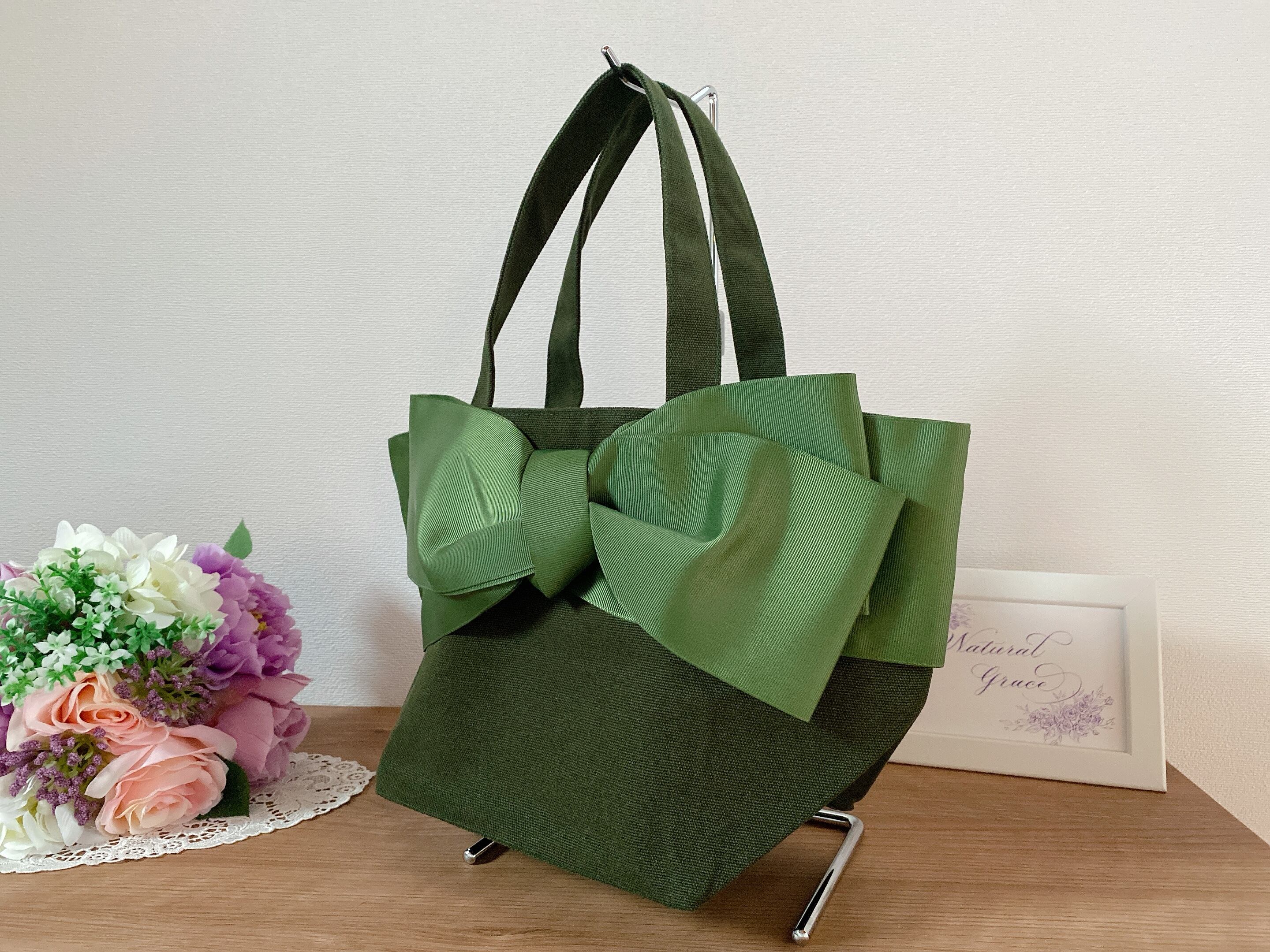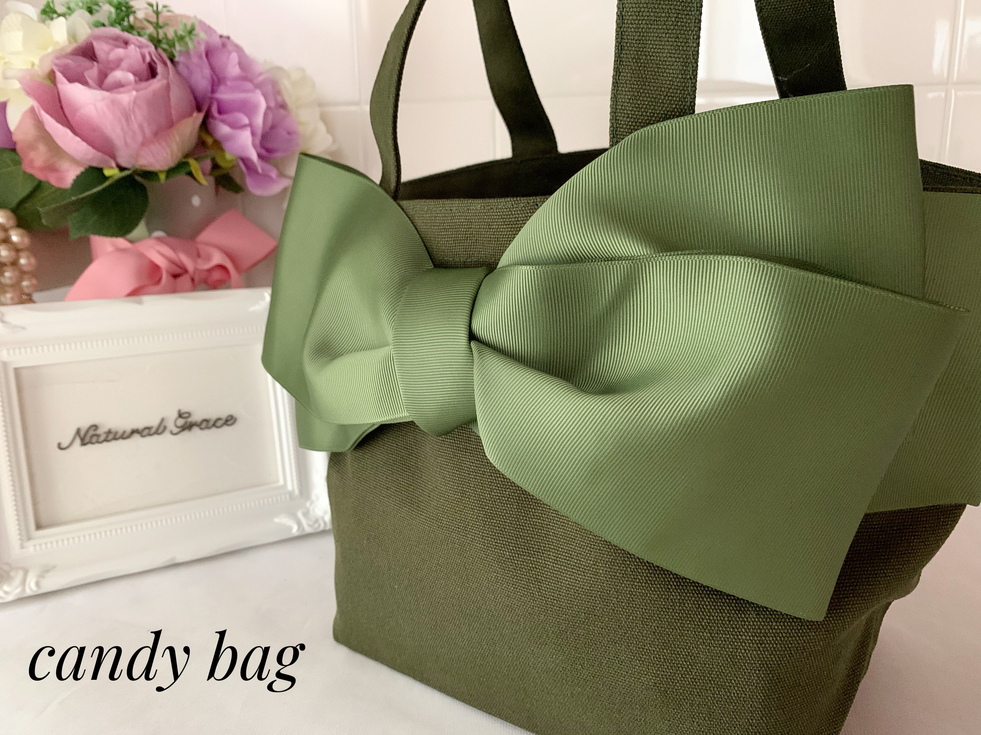 大人キュートなリボンバッグ《candybag 》ダークグリーン×カーキ