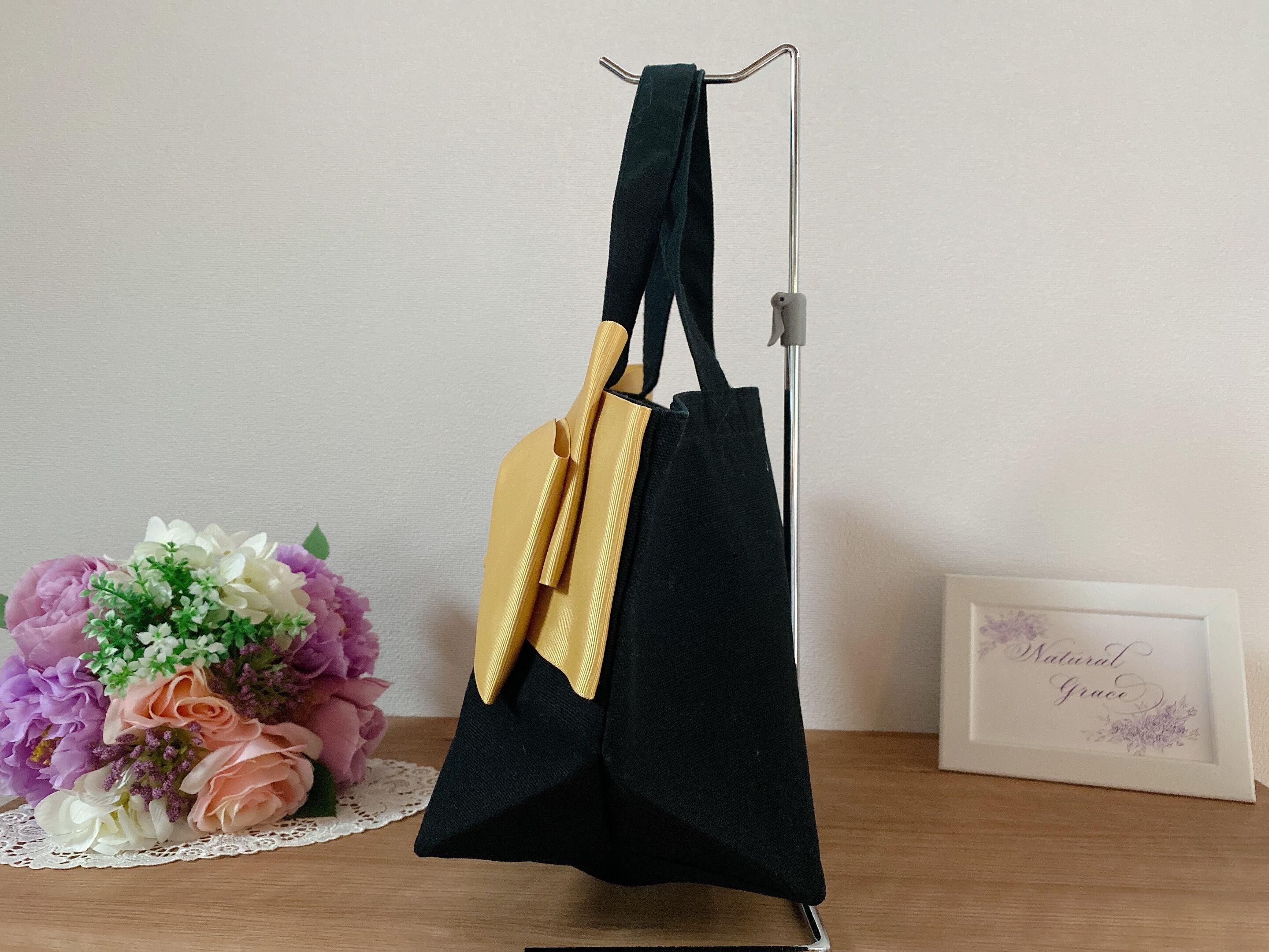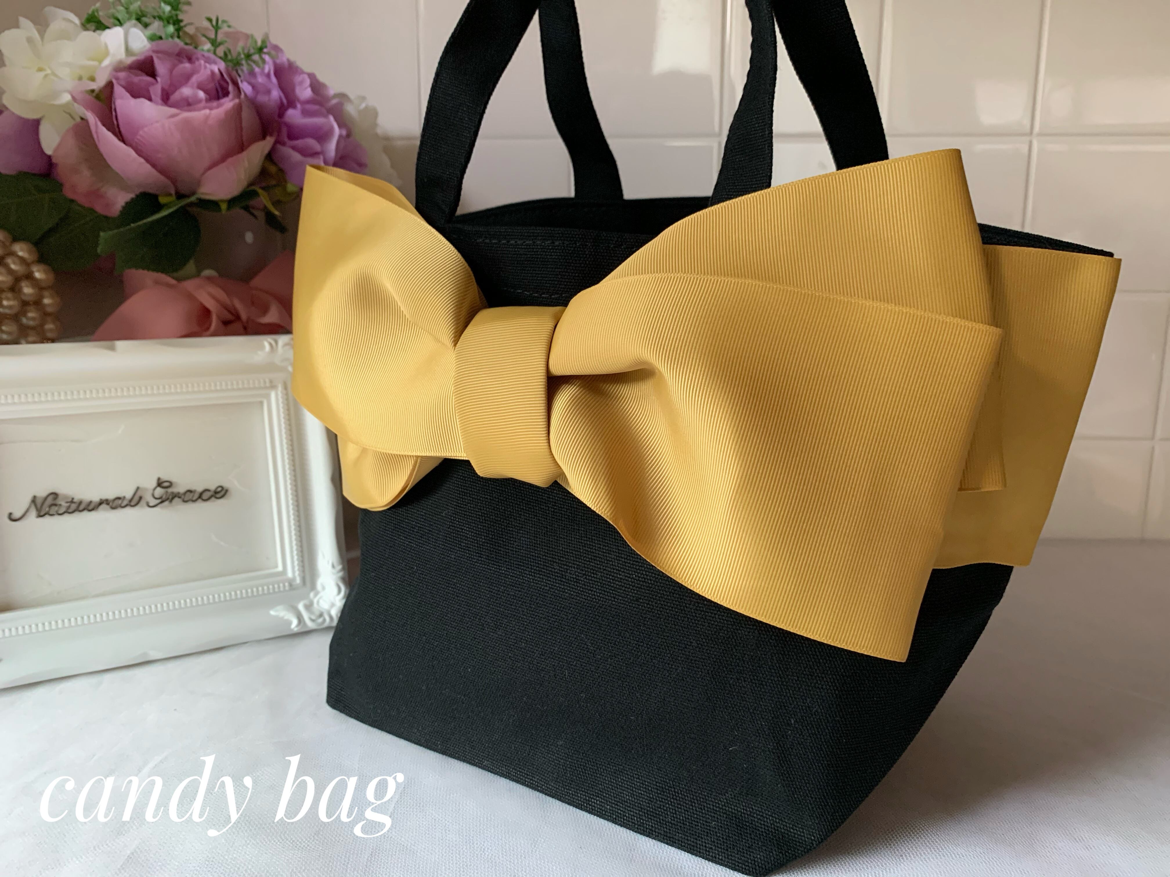 大人キュートなリボンバッグ《candybag 》ブラック×マスタード