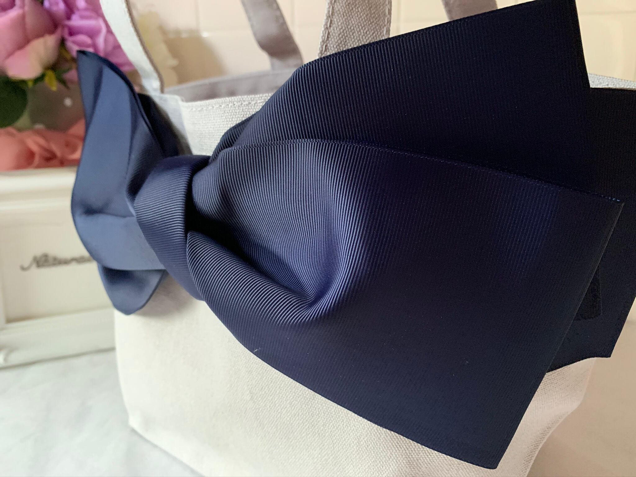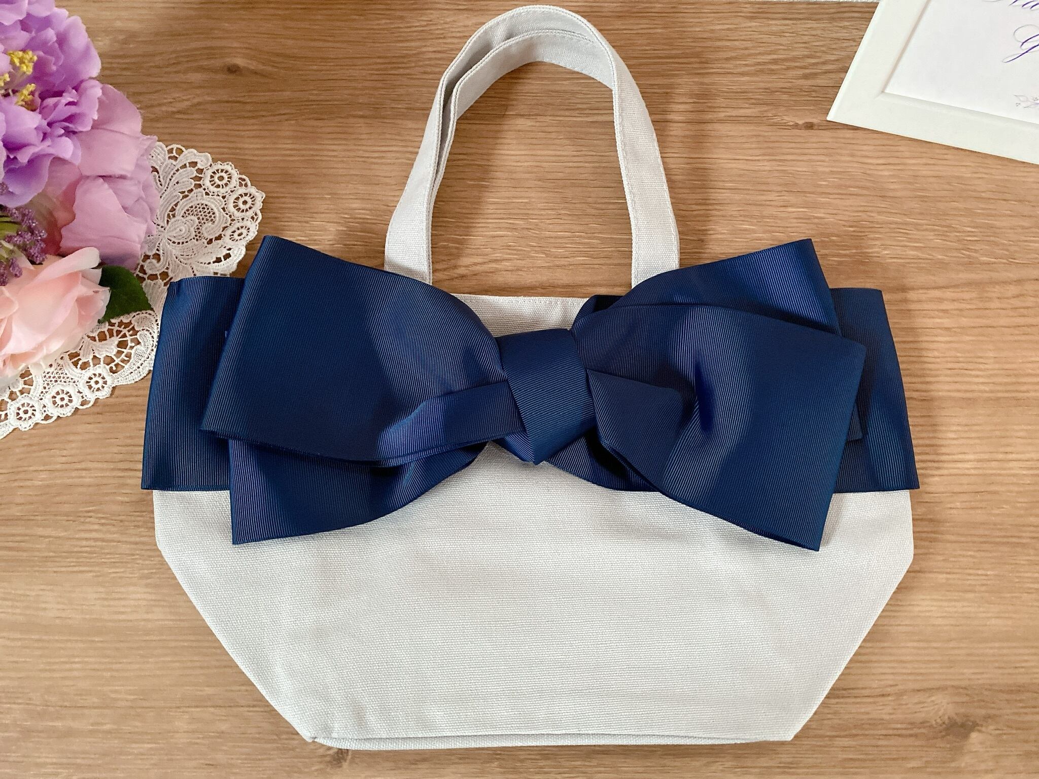 大人キュートなリボンバッグ《candybag 》グレー×ネイビー