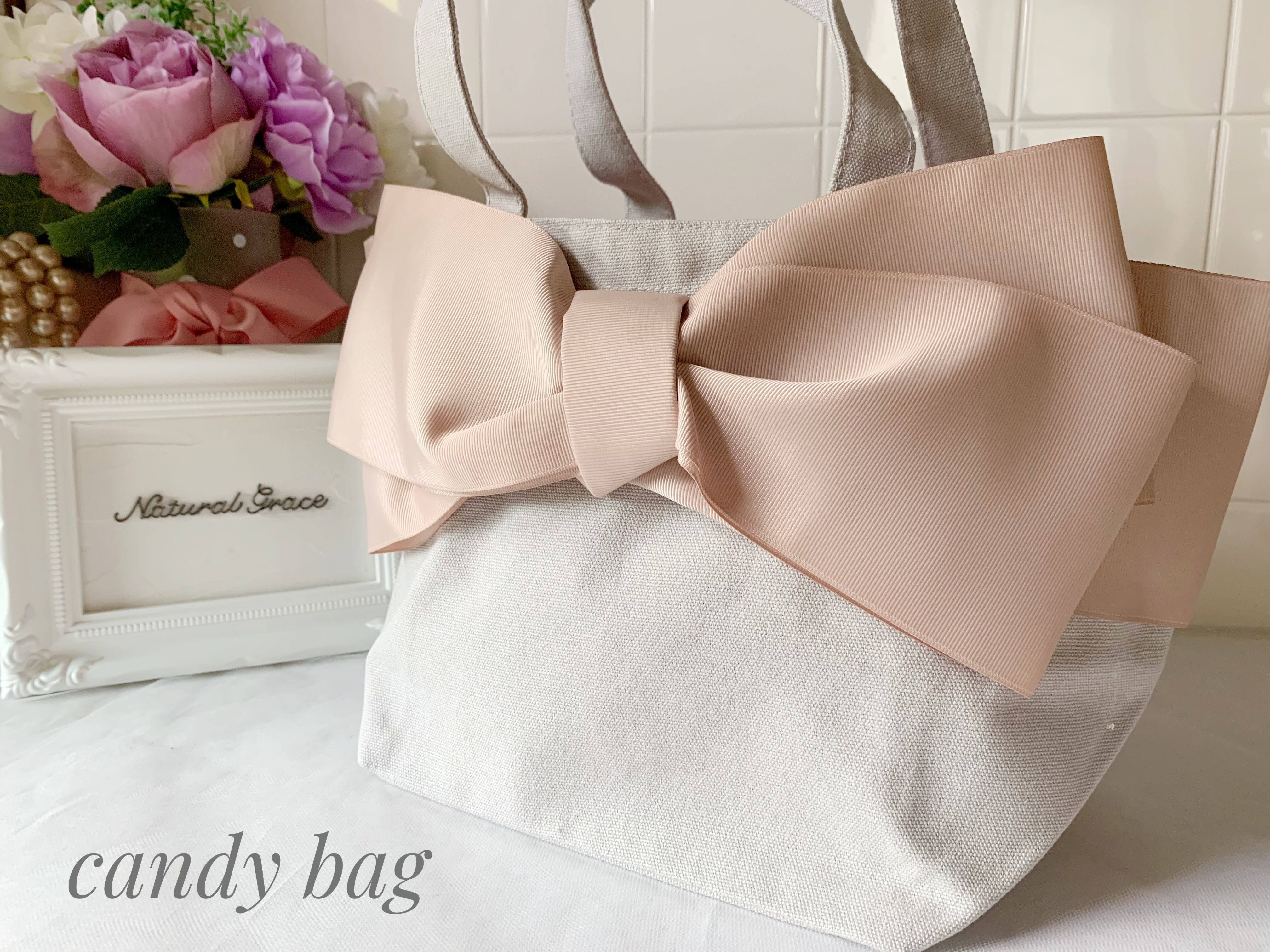 大きなリボンのついた大人キュートなリボンバッグ(キャンディバッグ)です。